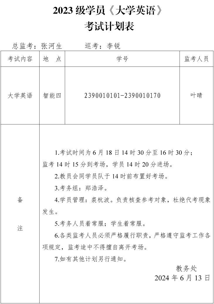 2023 级学员《大学英语》考试计划表