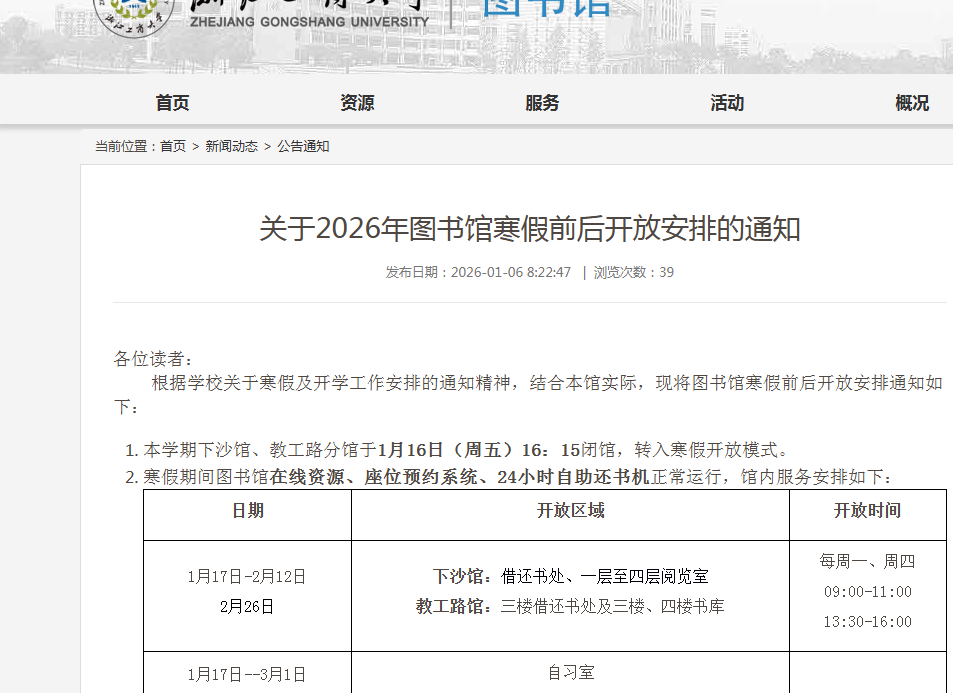 关于2026年图书馆寒假前后开放安排的通知