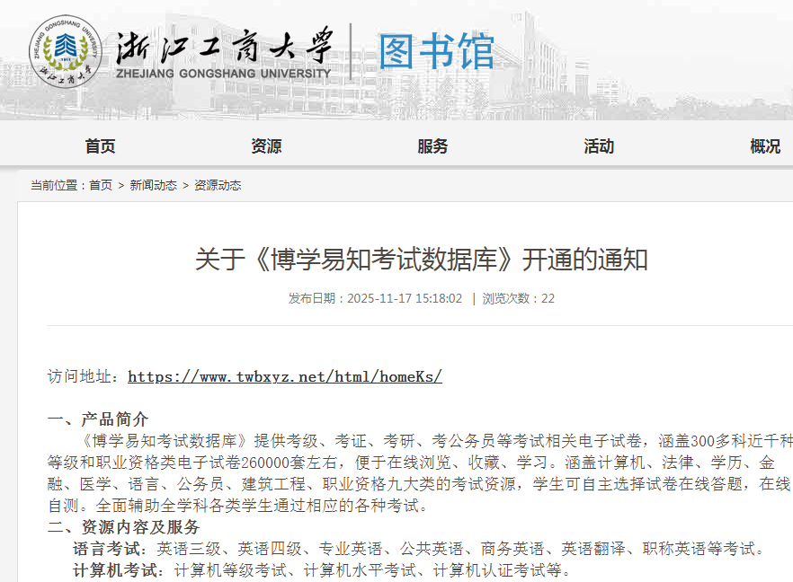 关于《博学易知考试数据库》开通的通知