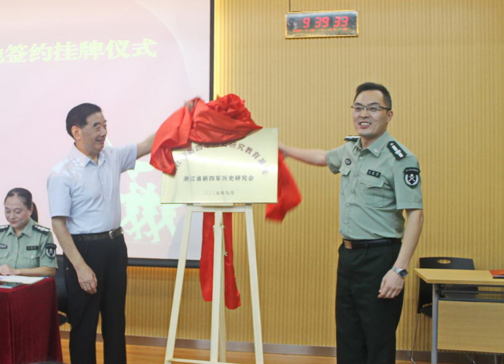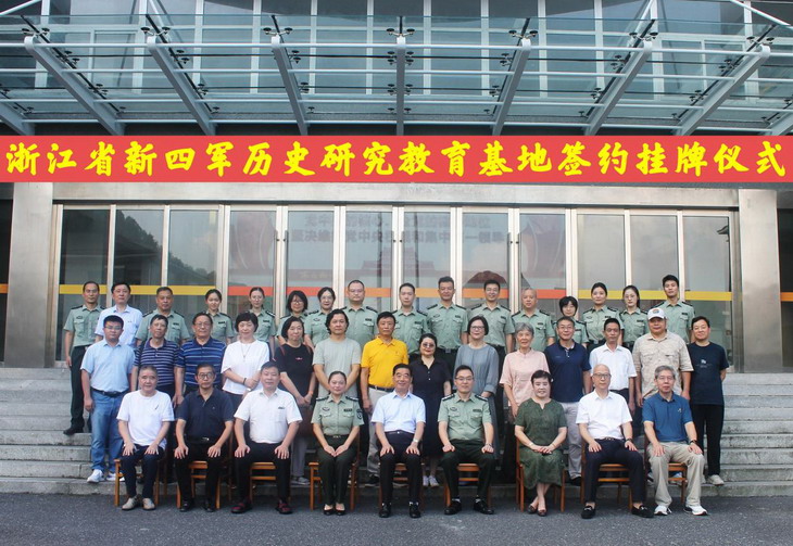 在与会嘉宾的共同见证下,双方代表签署合作协议,共同为浙江省新四军历史研究教育基地揭牌。基地建成后,双方将组织开展史料研究、学术研讨、实践教学等系列活动,推动红色文化资源与高等教育深度融合,致力于构建“研究-教学-实践”三位一体的育人模式。