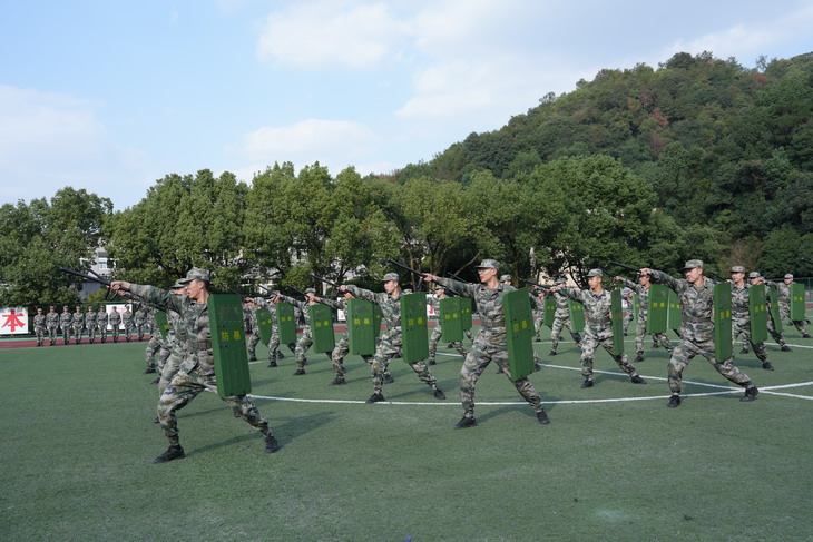 伴随着铿锵有力的口号声,一场精彩的教学成果展示在学院田径场拉开帷幕。队列整齐划一,动作干净利落,充分展现了学员们过硬的军事素质和良好的精神风貌。紧随其后,一套虎虎生风的刺杀操,将学员们勇猛顽强的战斗精神展现得淋漓尽致,刀光剑影间,尽显军人血性。一套刚劲有力的擒敌拳,更是将力量与技巧完美结合,一招一式,都透露着克敌制胜的信心与决心。随后的盾牌警棍术表演更是引人入胜,攻防兼备,气势如虹,赢得了现场观众的阵阵掌声。