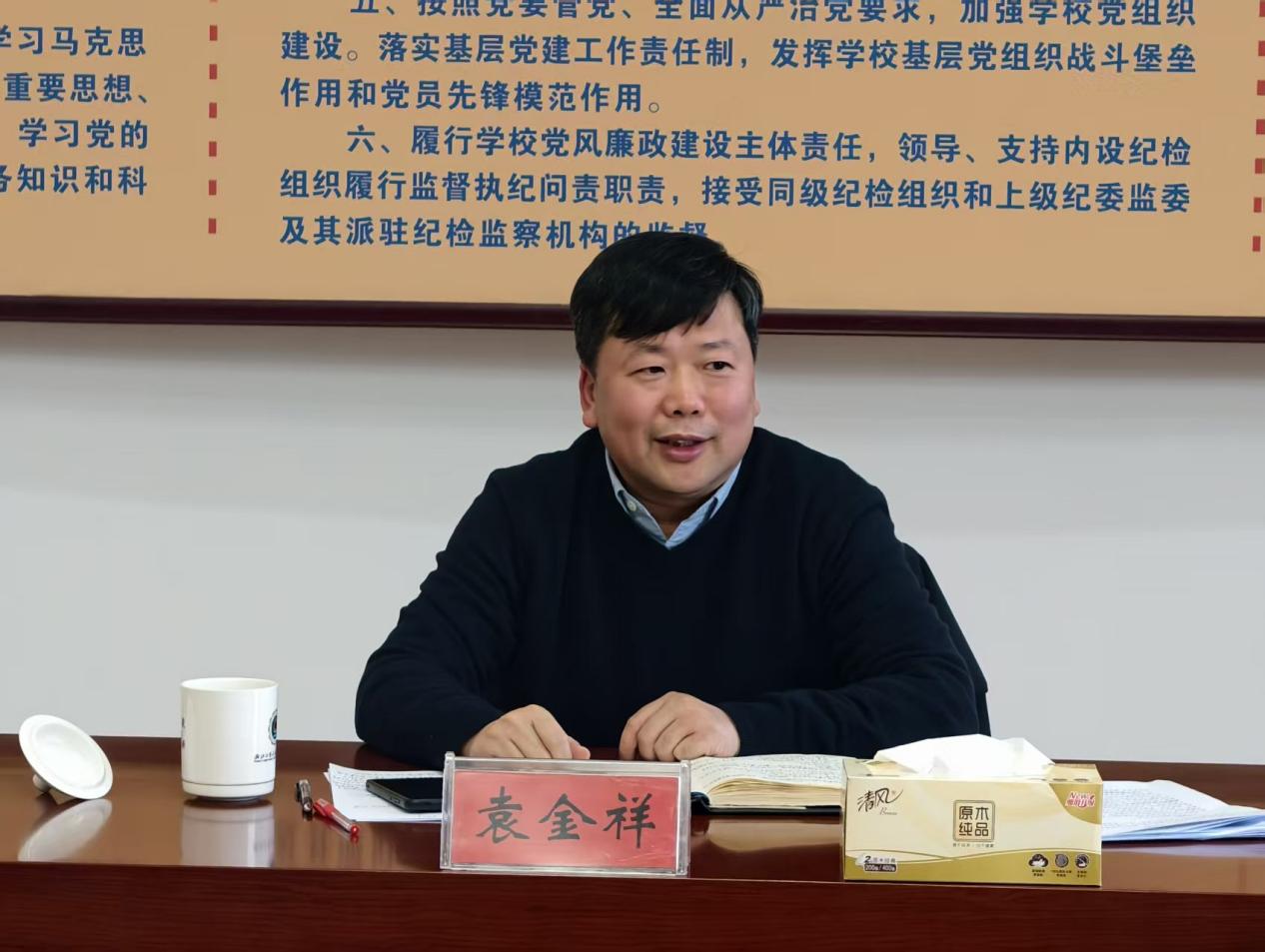 袁金祥就学院下一阶段工作作指导讲话。他强调,人武学院要立足发展实际,科学谋划2026年度工作,聚焦核心任务,加强督查督办,确保新年度工作落实落地。要进一步提高国防动员人才培养能力。要规范办学行为,扎实推进教学改革,完善人才培养方案,加强学生就业精准指导,切实提高学生毕业就业质量。要进一步提高服务区域国动事业需求的意识能力。充分发挥学科、人才优势,致力于服务“创新浙江”建设课题研究,为浙江国动事业发展提供有力支撑。要进一步提高管理评价机制和学科专业组织模式。牢固树立现代大学办学理念,有序开展规章制度“废改立”;高起点谋划人才队伍建设,努力打造一支专兼结合、结构合理、素质精湛的师资队伍。要进一步优化资源配置和资金使用管理。建立健全多元投入机制,提升撬动社会力量投入的能力,持续加强财务管理水平,拓展提升国防动员等领域的社会服务能力,实现社会效益和经济效益齐头并进。要进一步提高党风廉政建设水平。学院党委要树导向、强组织、治未病,严格落实党委纪委两个责任,坚持预防为主、教育在先,依法依规、合情合理,强化政治理论学习,深入开展警示教育,持续筑牢廉政风险防线,营造风清气正的良好干事创业氛围,为学院发展提供坚实的组织保证。